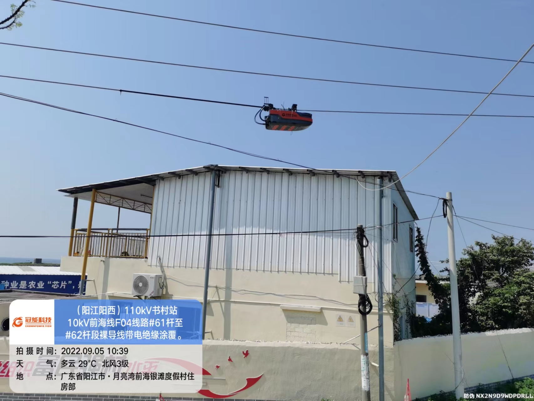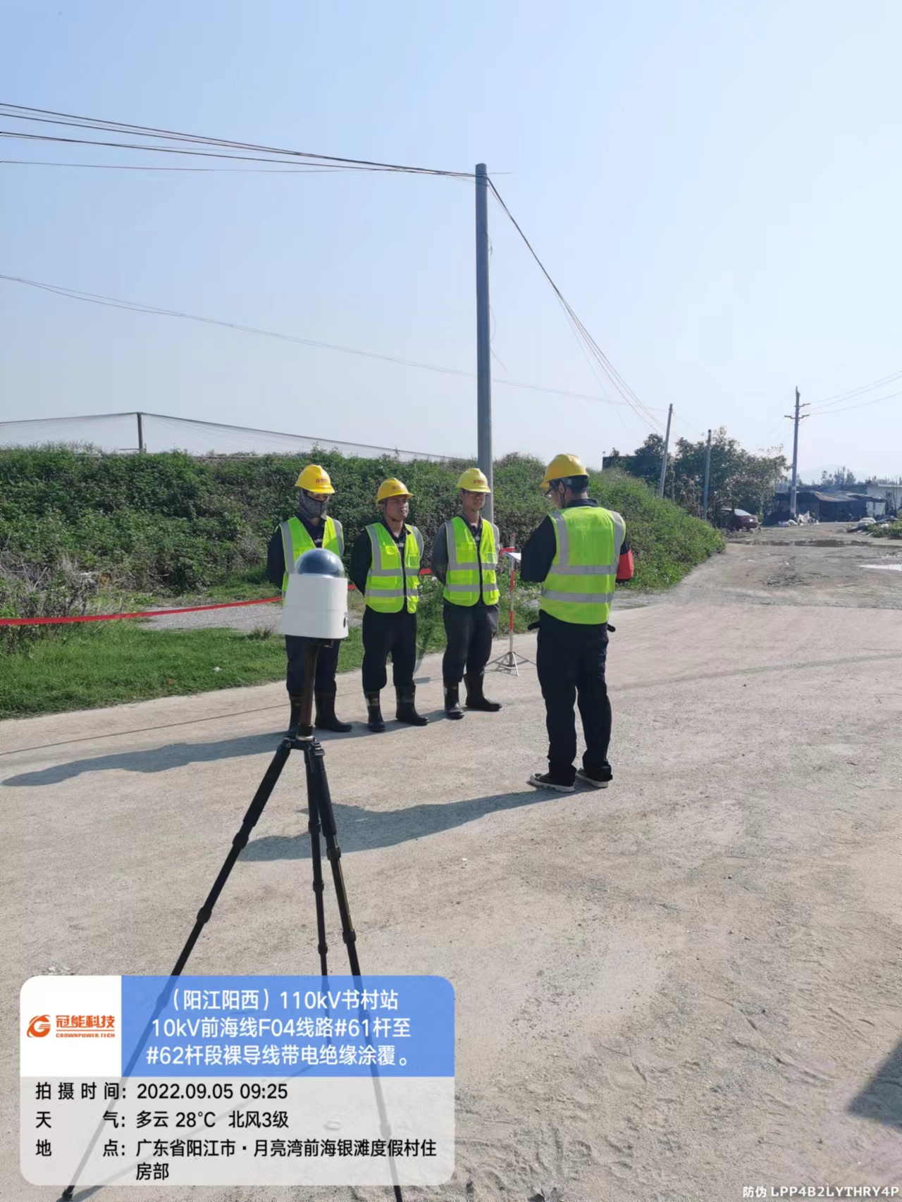 陽江陽西110kV書村站10kV前海線F04線路#61桿至#62桿段裸導線帶電絕緣涂覆及交底。