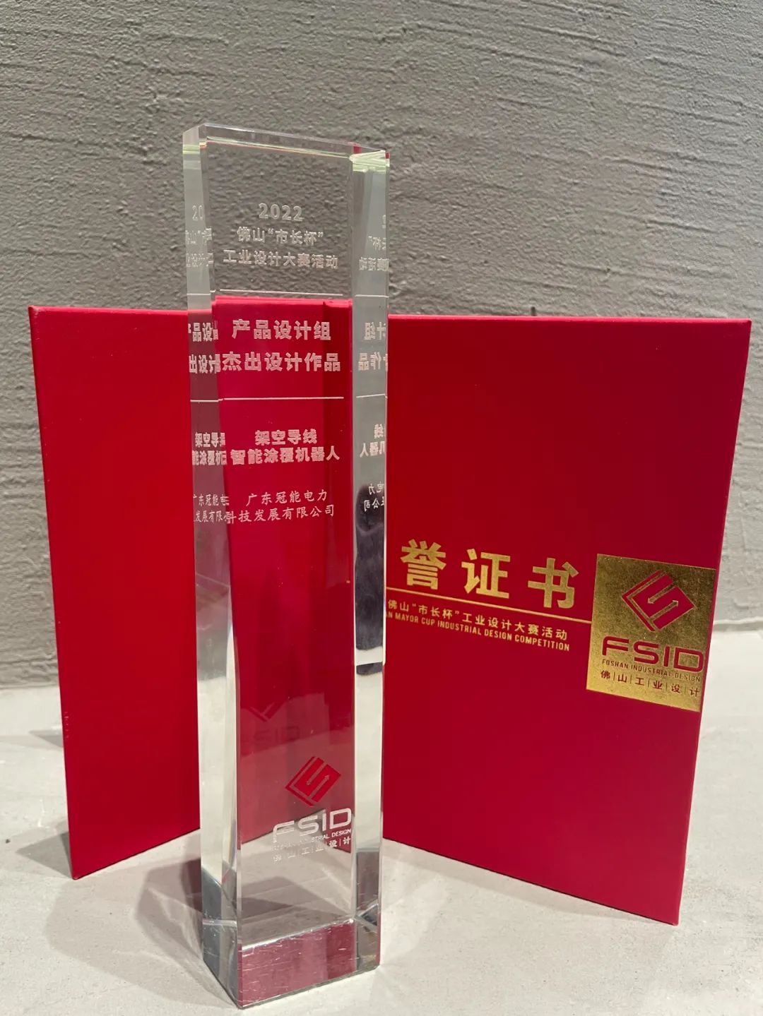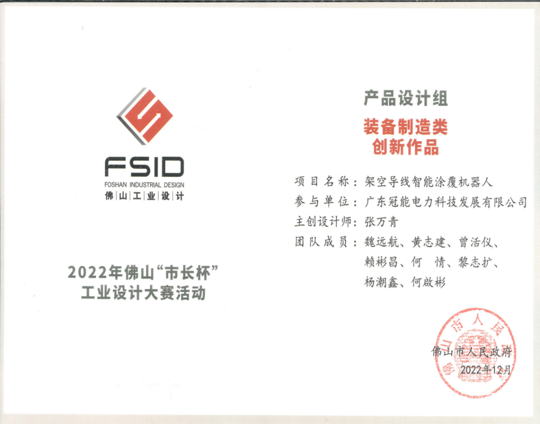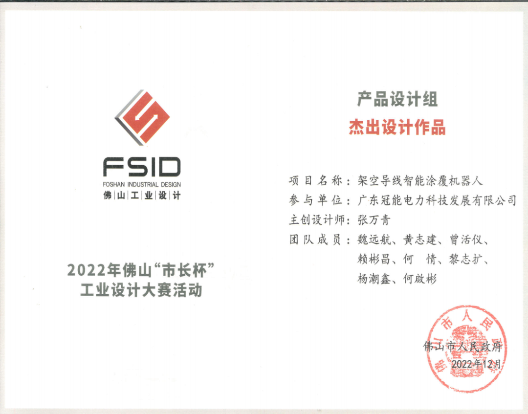 架空導線智能涂覆機器人,被評為「杰出設計作品」,捧回榮譽獎杯。